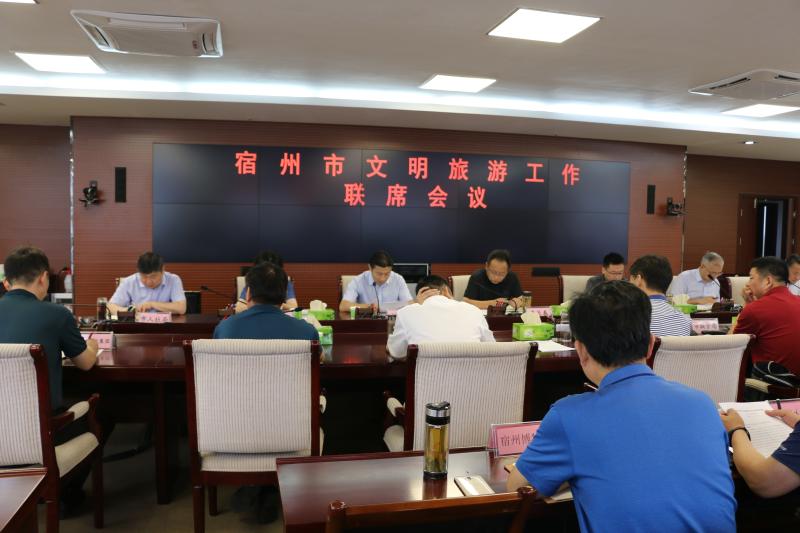 7月17日上午,宿州市文明旅游工作聯(lián)席會議在市政府第一會議室召開。市政府副秘書長盛長春出席會議,文明旅游工作聯(lián)席會議成員單位、埇橋區(qū)文化和旅游局、市區(qū)重點(diǎn)旅游景區(qū)、星級飯店等參加會議。市文化和旅游局黨組成員、副局長縱文華主持會議。